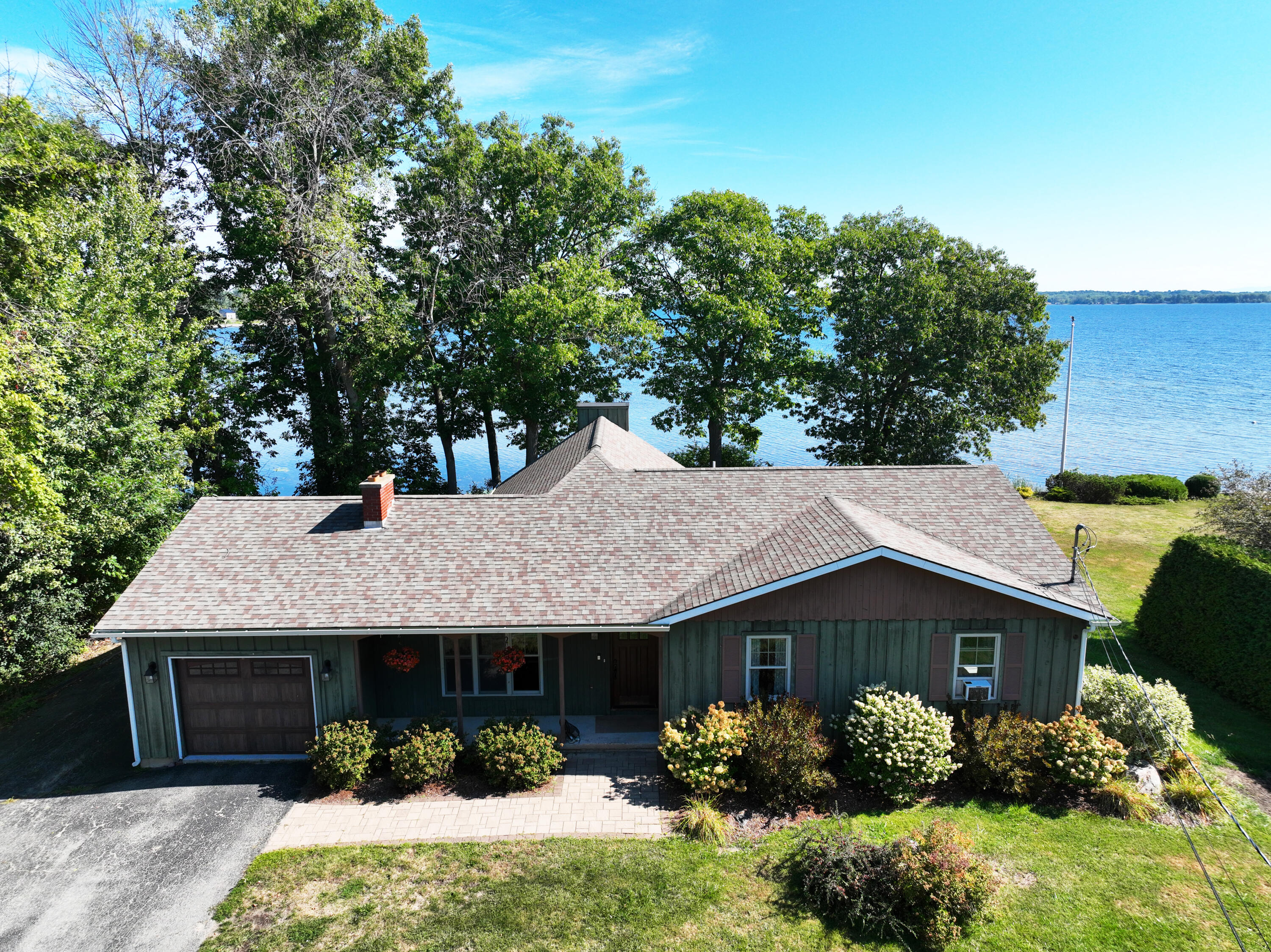Beautifully renovated lake home. Enjoy breathtaking views from wall-to-wall windows in the spacious living room, featuring cathedral ceilings and a cozy propane fireplace. Step through sliding glass doors onto a beautifully hardscaped patio that leads to 100 feet of pristine frontage on Lake Champlain.The open-concept kitchen is equipped with stainless steel appliances and flows seamlessly into a generous dining area--great for entertaining. The primary suite includes a primary bath with tiled shower and its own set of sliding doors that open directly to the patio and lakefront. Additional highlights include a new boiler. Just minutes to School, restaurants and I-87.