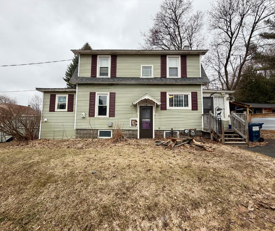 New price and now open to all financing types, including conventional, FHA, VA, and more. Sellers will complete lender-required repairs for loan compliance, weather permitting.Updated Colonial in a village setting within the Adirondack Park offering 3 bedrooms and 2 full baths. The kitchen features eco-glass countertops and newer cabinetry, opening to the dining room for easy everyday living and entertaining. The living room includes original hardwood floors, built-ins, and a gas fireplace, with a stained-glass accented staircase adding character.The former front porch has been converted into a functional entry with main-floor laundry and a full bath featuring a shower and soaking tub, highlighted by a crystal chandelier, repurposed sink, and handmade vanity. Barn doors add charm and function.Upstairs offers three bedrooms and a second full bath. Recent updates include an on-demand boiler, vinyl siding, and updated light fixtures. Washer/dryer combo included.Enjoy a fenced backyard, screened porch (hot tub excluded), and a 10x12 insulated shed with power, currently used as a gym. This home has been Pre-inspected- repairs in progress.Conveniently located near Chazy Lake and a short drive to Plattsburgh, I-87, and Lake Champlain.