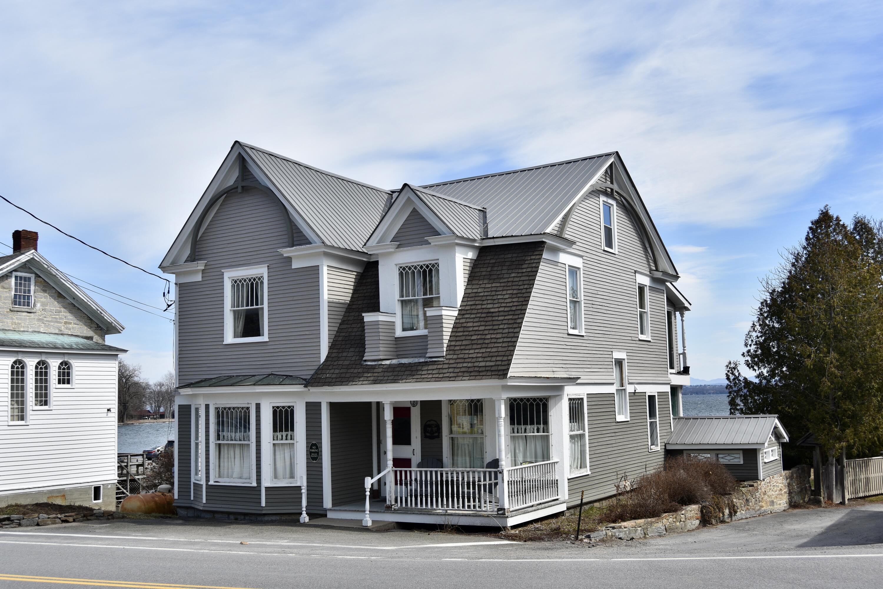 Located on the western shores of Lake Champlain, this beautifully restored lakefront home in the historic hamlet of Essex offers stunning views of the lake that comes right up to its backyard seawall for direct access. A wall of full-length, sliding glass windows fills both the spacious open-concept living and kitchen area and the second-floor primary bedroom allowing for expansive easterly views looking to the Green Mountains of Vermont.This is one of the few private properties in the hamlet with its own waterfront, offering the opportunity to moor a boat or launch a kayak or paddle board to explore the lake.The home maintains many of its original historic details, including numerous oversized two-over-two windows throughout, creating a bright and airy living space, along with hardwood flooring in most rooms.Newly installed kitchen with granite countertops, updates to the 2nd floor bathrooms and new flooring in primary bedroom. Interior rooms have been freshly painted, decorative wood trim added and new light fixtures and ceiling fans installed throughout. The exterior painted in 2025, new propane furnace and an electric heat pump were installed in 2025, providing air conditioning and a secondary heat source. Spray foam insulation added in basement under kitchen area addition to improve heat efficiency.Landscaped waterside yard has brick stone patio and in-ground fire pit. Small storage with separate entrance overlooking the yard could be converted into a studio or workshop.Walk to the many amenities in the hamlet, Ferry to Vermont makes it a quick trip to the city of Burlington and the international airport.A short drive to the town of Willsboro, which offers two full service marinas, a public boat launch site, a small grocery store, bank, hardware store, pickleball courts, and tennis courts. Close to Lake Placid for hiking and skiing, four hours to Boston, 2.5 hours to Albany, and just 90 miles to Montreal, Canada.