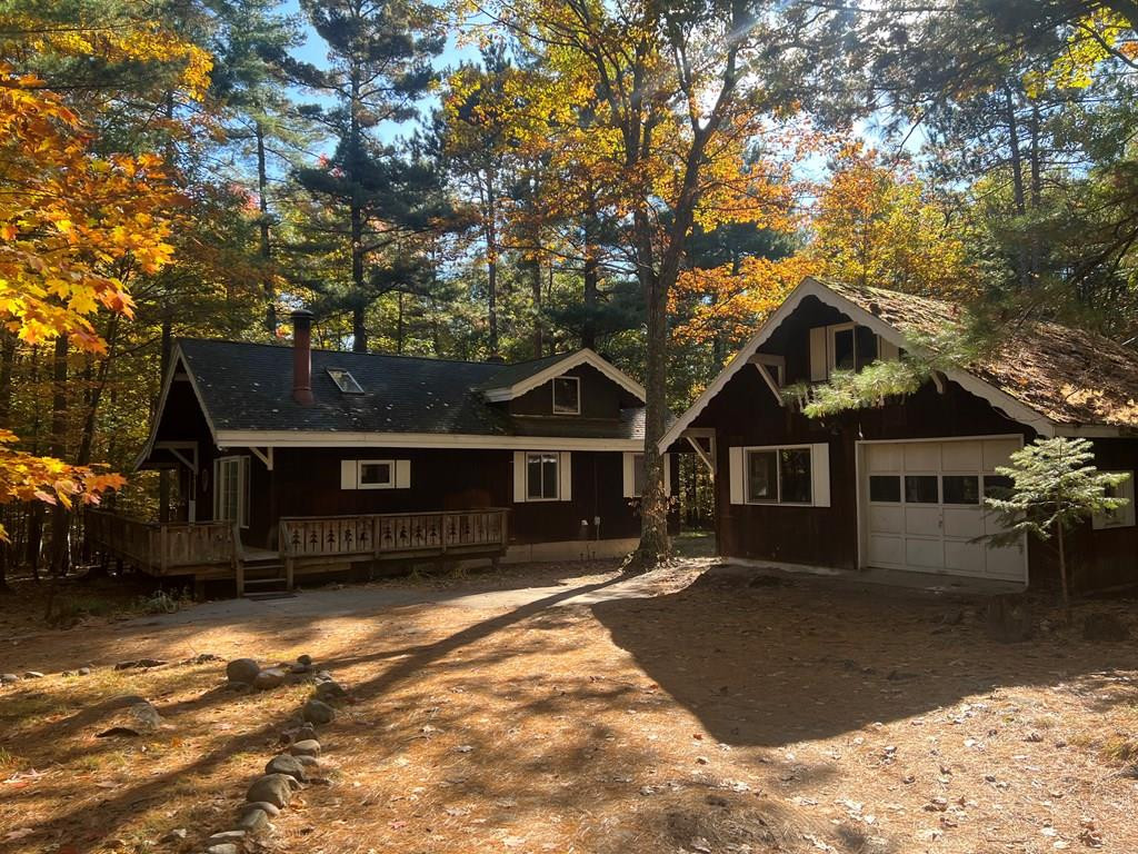 This 1300sq ft home has 3beds, 1.5 bath with a 1 car garage that is perfectly located in the Au Sable Acres with close proximity to Whiteface Mountain, Lake Placid and many hiking trails. This home features beautiful Adirondack arched windows with exposed beam Cathedral ceiling, new flooring and a large loft suite with a half bath. The front of the home has a large wrap around deck and large screened in porch entrance and amply trees for additional privacy from the lightly traveled road, the back yard opens up to a great area to entertain and is complete with a backyard fireplace. The one and half car dethatched garage provides room for a car and a small workshop while the loft in the garage provides space for additional storage. This home is currently vacant and ready to be customized for a new family or made into the perfect Adirondack retreat. This home is pre-inspected and priced to sell quickly. **Seller owns the adjacent lot which they would entertain selling to the next owner.