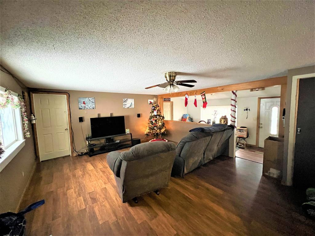 This 3 bedroom, 1 bath home is perfect for anyone looking for open living space all on 1 floor. As you first enter the home you walk into a large foyer area that then leads you to the living room and kitchen. The kitchen features ample cabinet and counter space as well as a faux rock faced kitchen island. The Master Bedroom comes complete with 2 separate closet spaces. The remainder of the 2 acres of the property is comprised of a wooded area that provides privacy from neighbors and a large back yard complete with a fire pit and mountain views.