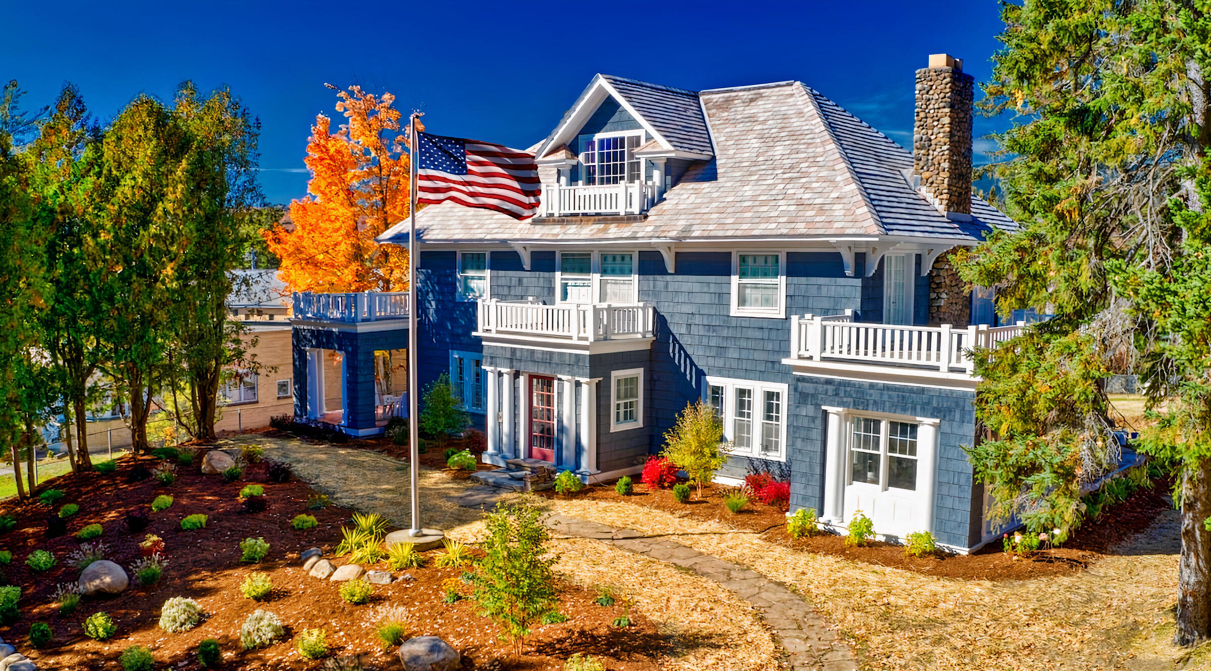 Welcome to your Adirondack getaway! Nestled on a one-acre lot with stunning views of the Adirondack Mountains, the ''Adirondack House'' sits directly between Mirror Lake and Lake Placid just a block away from the marina, shops and restaurants of Lake Placid's charming Main Street, the Olympic Village. With unlimited vacation rentals permitted, this property offers enormous investment potential. The current owner rented over $150,000 last year. This colonial revival home is a unique part of Lake Placid history. Built in the early 1900's and located on the land once owned by the Steven's brothers (Lake Placid's first hoteliers), the home was totally renovated in 2021. While retaining a number of historic details, maple hardwood floors, columns, hand-carved beams, stone patios, and balconies, the newly remodeled home is both spacious and comfortable as well as offers a host of modern amenities. The large gourmet kitchen has a wine fridge, TVs in every bedroom, WiFi throughout the house, and a game room with poker table, dart board and more! Selling furnished turn key!