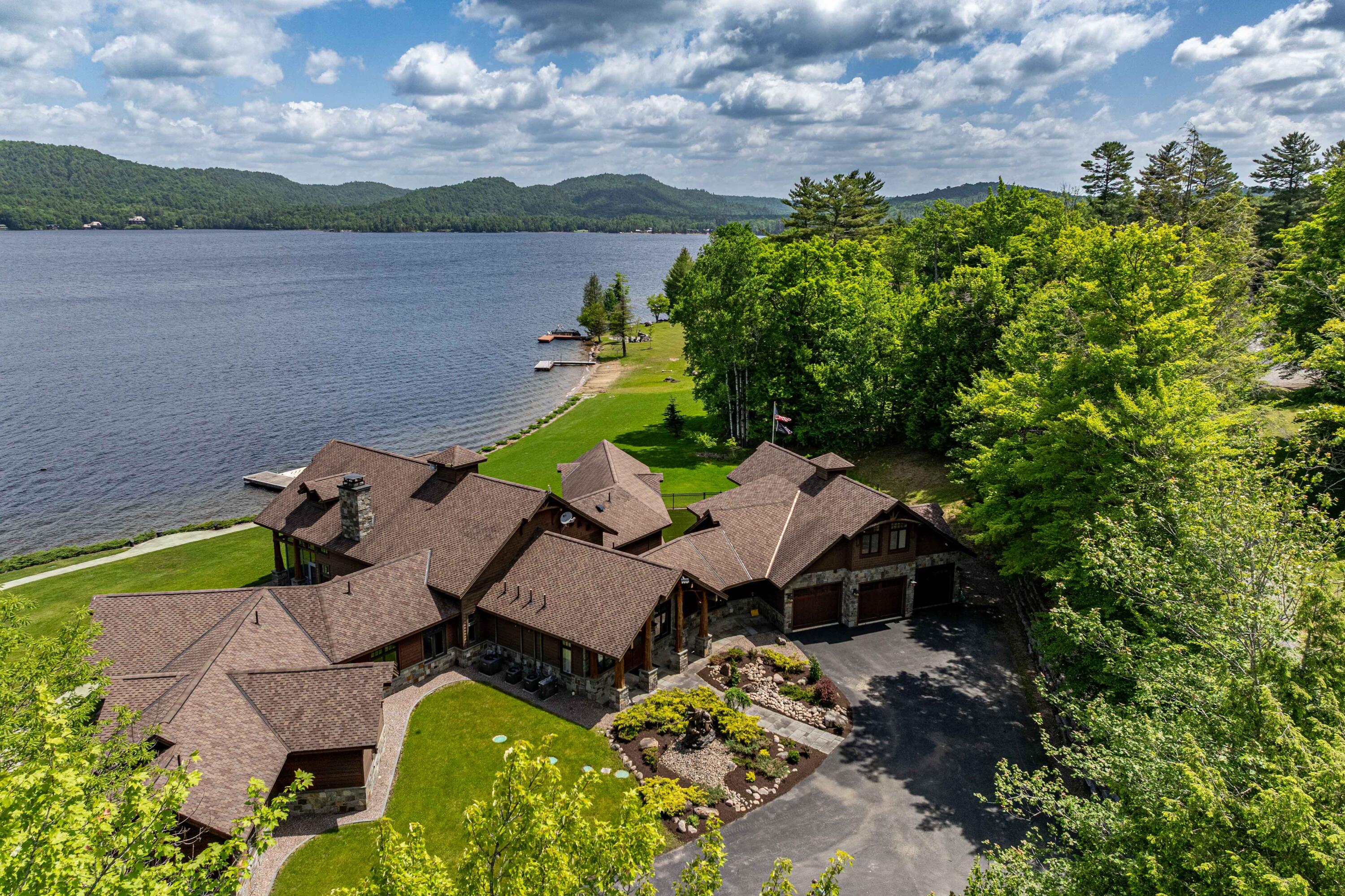 This exceptional Adirondack compound on the shore of Fourth Lake includes three year round dwellings and two separate building lots-one 140' waterfront lot and an off water lot-offering incredible versatility and value. The property features a Main Lodge, probably the most beautiful on Fourth Lake, with a massive boathouse, two additional year round homes and a guest cottage, collectively offering 12 bedroom suites and several half baths. Enjoy the sandy beach on level ground, perfect for sports, year round. All homes are fully furnished and move-in ready, with well-equipped kitchens, cozy living areas and Adirondack charm throughout. Included are newer boats, a Nautique and Pontoon, vehicles and jet skis-everything you need to start enjoying lake life immediately. Whether you're looking for a private retreat, family compound, or income-producing investment, this rare offering delivers an unmatched opportunity to won prime waterfront in the heart of the Adirondacks. All lots are Adirondack Agency Permitted and Town of Webb Zoning approved.
