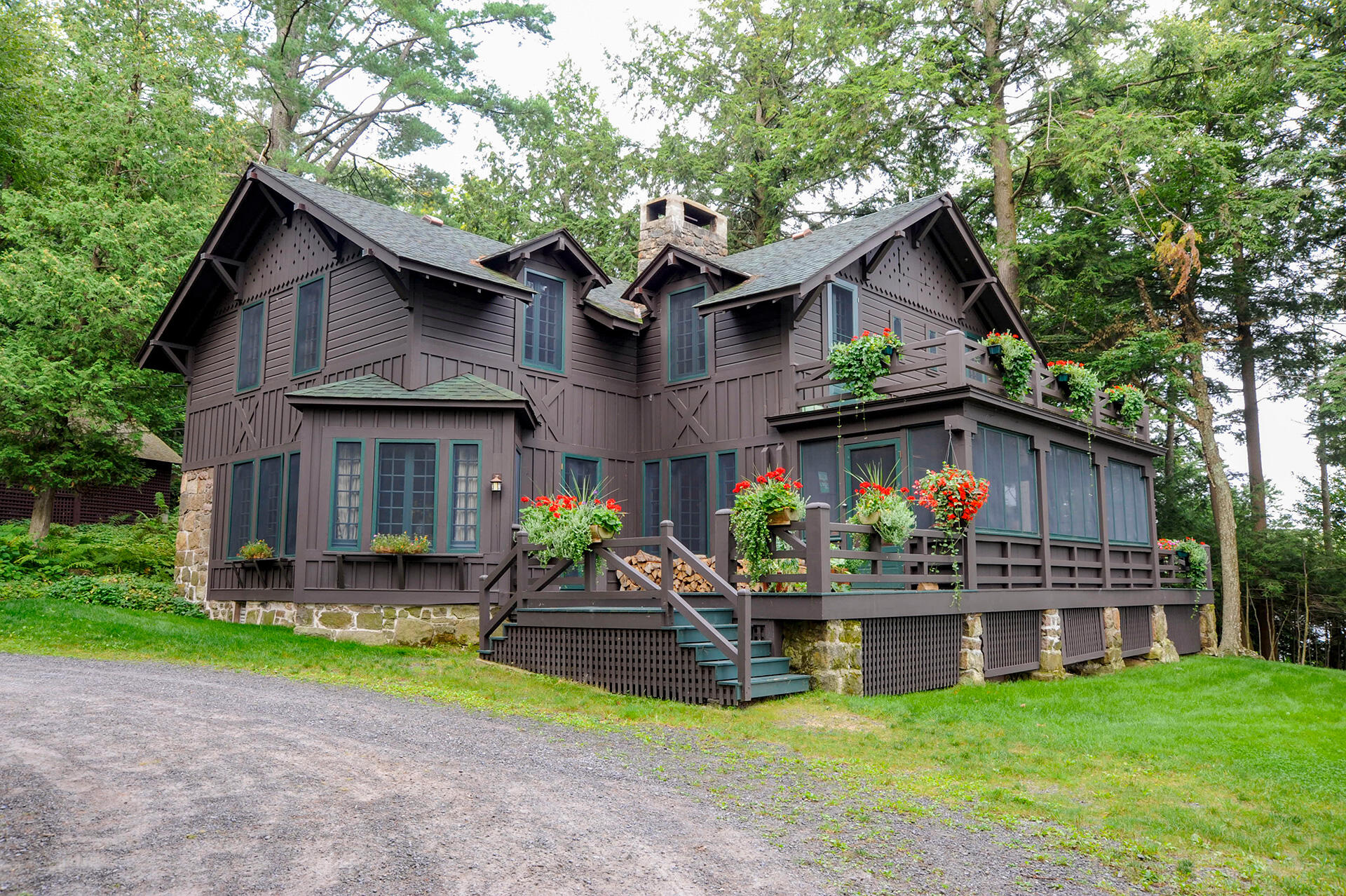 An Adirondack Great Camp Built in 1906 for whiskey baron Henry Levy and designed by the famous architect Julian Clarence Levi. Step back in time with original details to the elegance of this Adirondack era. Nestled on a private road, Hemlock Ledge boasts over 28 acres with 530 feet of waterfront on Tupper Lake with a boathouse. The main home showcases Adirondack craftsmanship, featuring custom wood work, metal, and stonework that defines the quintessential Adirondack character. The four-season main lodge has 4 bedrooms, 2.5 baths, a living room with stone fireplace, dining room, study, and large porch, all with stunning lake views. Almost every room has its own fireplace, with the living room's grand stone fireplace a masterpiece. For overflow guests, there is a adjoining summer bunkhouse with 4 bedrooms, a full bath, and three season living, warmed by a cozy wood stove. On the water's edge find the Birch Cabin, a true artisan retreat with handcrafted birch details. There is a full bath and a charming fireplace. The 2-slip boathouse features a large dock and is set on a solid concrete foundation. The boathouse is the ultimate summer gathering spot, to include a changing room, an upper game room with pool table, a balcony overlooking the lake, and plenty of space for lakeside entertainment. Conveniently located just 30 minutes from Adirondack Regional Airport, this property offers easy access to all the Adirondacks has to offer. A once in a lifetime to step back in this Adirondack era of grandeur. This listing includes Tax ID 509.-2-1 which has a gutted cabin at the gate to the property. This separate parcel has 30 ft of waterfront of the 530 total. Taxes, acres and assessment seen are for combined parcels. Room measurements are attached in the documents.